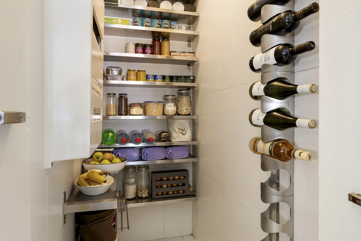 The modern kitchen is fully equipped and includes a dedicated fridge room with ample space for storing food, drinks, and supplies — a practical and luxurious feature that enhances everyday living and entertaining convenience.