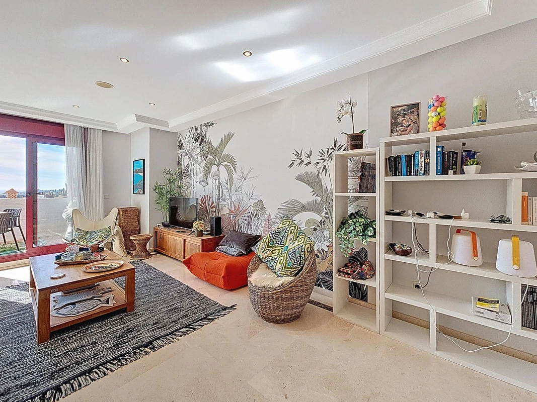 Welcome to this beautifully maintained two-bedroom, two-bathroom apartment located in the peaceful and secure community of Casares Golf & Country Club, just a few minutes from the beach and the world-famous Finca Cortesín resort. Bathed in natural light throughout the day, this home offers an inviting layout with a spacious living and dining area opening onto a private terrace enjoying serene sea views. The fully equipped separate kitchen includes a convenient laundry room. The master bedroom offers direct access to the terrace. Built in 2007 and perfectly kept, the apartment combines comfort with timeless Mediterranean charm. The gated community offers residents lush gardens, large swimming pool, and underground parking with a storage room. Ideal as a permanent home, holiday escape, or rental investment thanks to its excellent location near Estepona, Manilva, and Casares Pueblo.