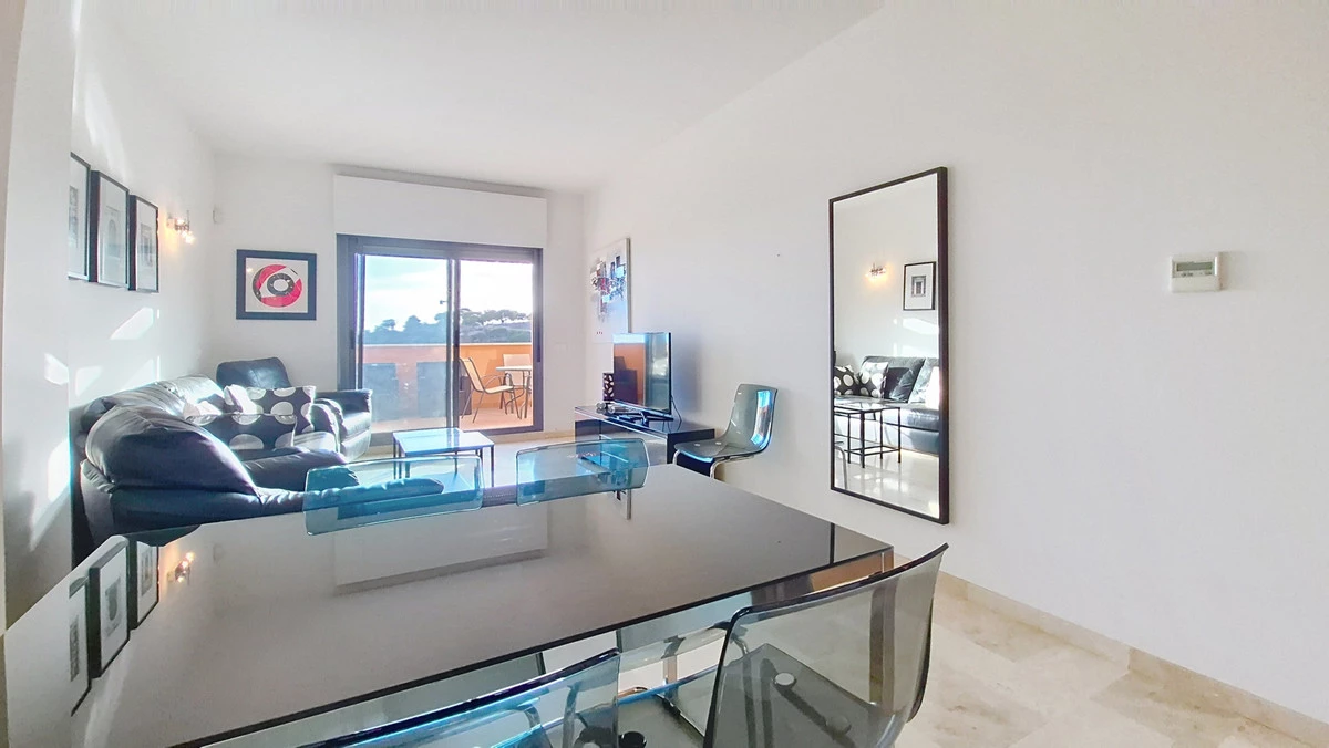 The apartment features a fully equipped kitchen, reversible air conditioning, and a beautiful terrace of approximately 20 m² with stunning views of the sea and the Rock of Gibraltar.