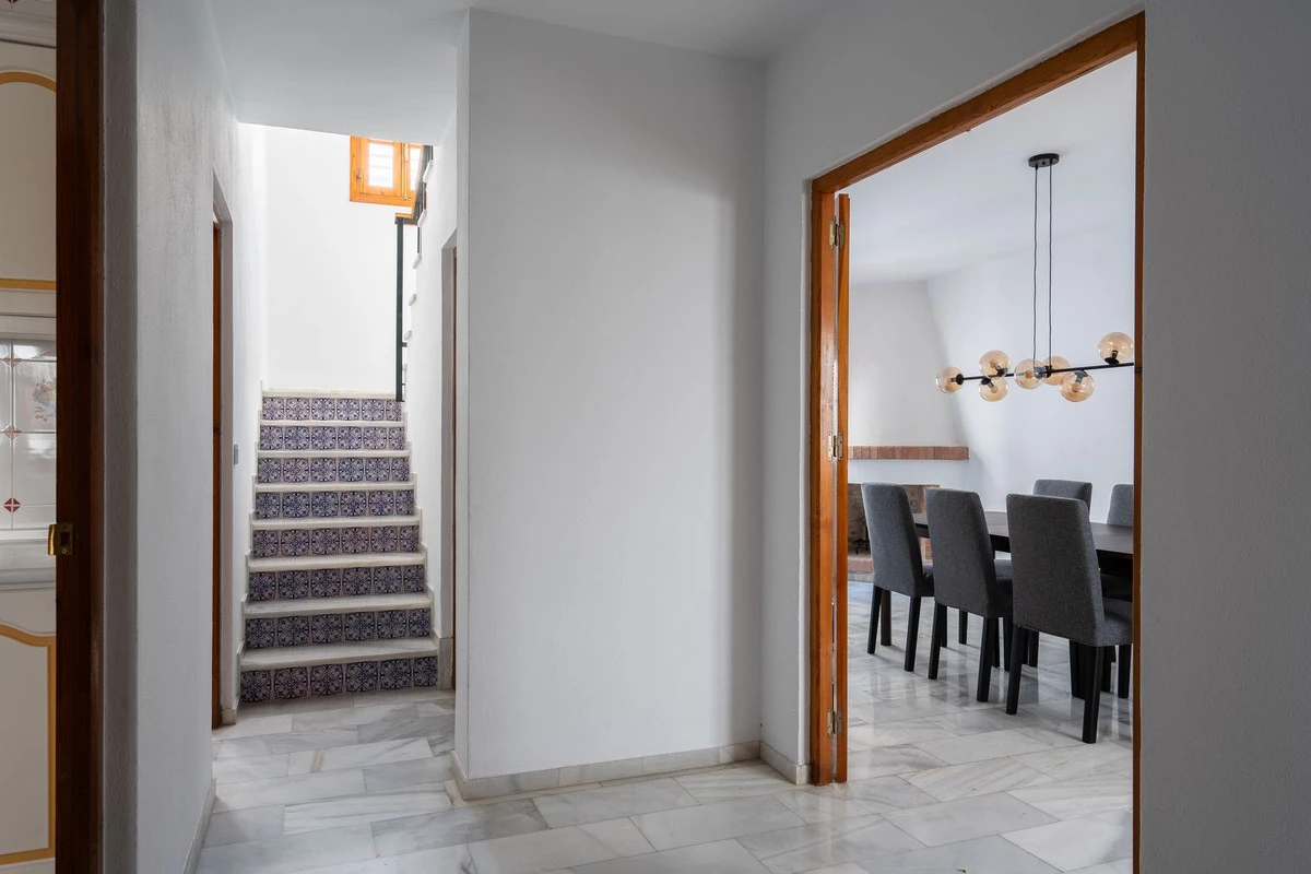 The townhouse is comfortable and cosy, with a spacious living room with a fireplace and a charming, fully equipped kitchen. The bedrooms with typical Andalusian balconies with original wodden windows, traditional flooring in all rooms, give this modern house a special feel. Tourist licence in place