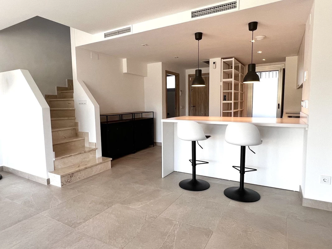 Bright Mediterranean design with contemporary finishes, large windows and excellent energy efficiency with thermal solar energy, insulation and low-consumption features.