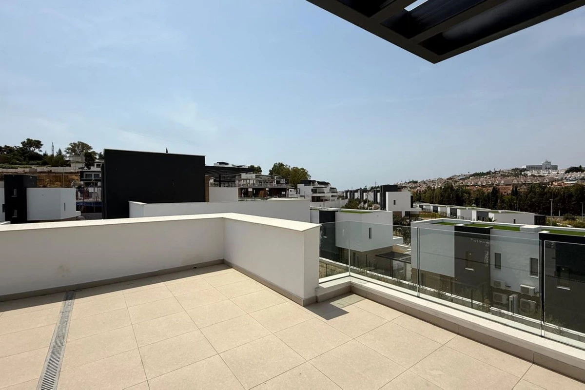 Brand new 3 bedroom semi detached villa for rent and sale located in the exclusive Serene Atalaya residential complex on the New Golden Mile in Estepona. The villa is built in a contemporary modern architectural style using high quality materials and offers 200 m² built area with 154.97 m² living space, 77 m² of terraces, a private garden of 182 m², a private solarium of 44.47 m² and private parking for two cars. The property currently offers three bedrooms with the possibility to create up to two additional bedrooms in the basement, allowing a total of up to five bedrooms. The basement benefits from natural light and can be converted into a gym, cinema room, games room, lounge or multifunctional living area. The villa is located within a gated and secure urbanisation surrounded by prestigious golf courses and green areas. It is just 7 minutes’ drive from Puerto Banús, 15 to 18 minutes from Marbella town centre and approximately 45 minutes from Málaga International Airport. Mercadona supermarket and daily services are within around 15 minutes’ walking distance. The villa is rented unfurnished. Optional full furnishing is available at an additional cost of 500 euros per month and a private swimming pool can be added for an extra 500 euros per month. This property is ideal for permanent living, a second residence or as an investment on the Costa del Sol.