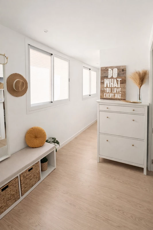 The kitchen is separate and highly practical, thoughtfully designed for everyday functionality while maintaining a clean and organized living environment. Its layout allows for efficient use of space while remaining conveniently close to the main living area.