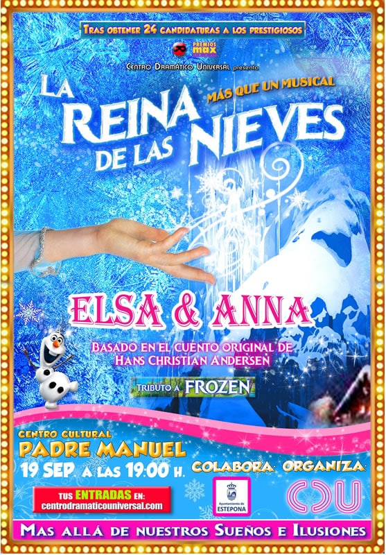 Estepona City Council informs that the Universal Drama Center will return to the Padre Manuel Cultural Center next Friday, September 19, at 7:00 pm, with ‘The Snow Queen’ by Hans Christian Andersen, a family musical theater production, Tribute to Frozen, which pays tribute to one of the most acclaimed films of our generation.
