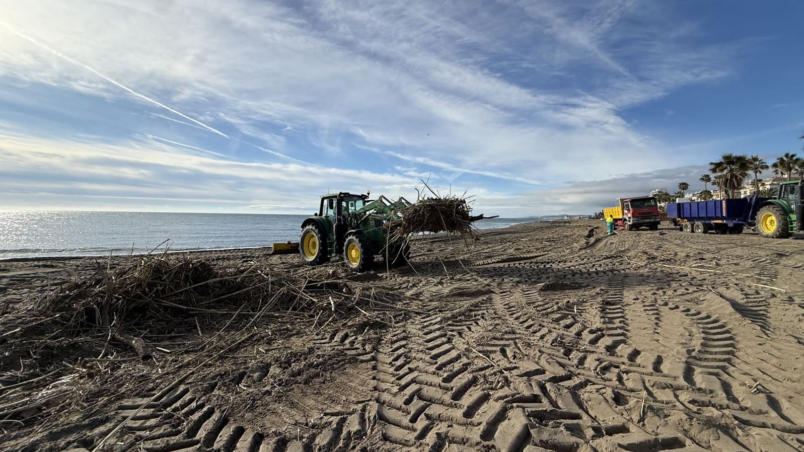 The City Council of Estepona is intensifying the cleaning tasks along the coast and has removed more than 2,500 cubic meters of reeds, which have been dragged to the beaches by the continuous rainstorms that the city is suffering.