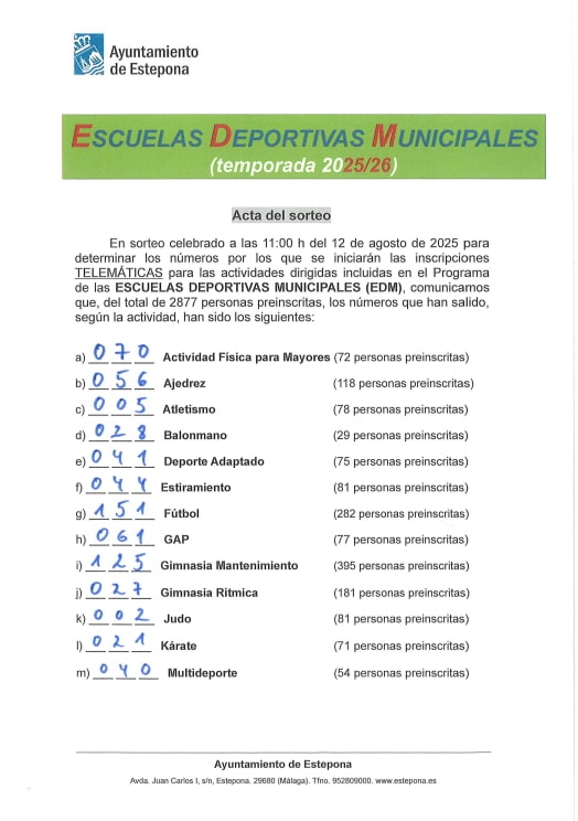Registration for the 10 kilometer urban race, the 5 kilometer race and the children’s race (with different distances depending on the category) can be done online at www.dorsalchip.es, as well as in person at Deportes Olimpia (c/ Pozo de los Palos, nº 85 from 10.00 to 14.00h and from 17.30 to 21.00h), Centro Deportivo de Fitness y Pádel Las Mesas (avda. Reina Sofía, s/n, from 10.00 to 21.00h) and at Uniformes Estepona (c/ Valladolid, nº 13, from 09.30 to 14.00 h).